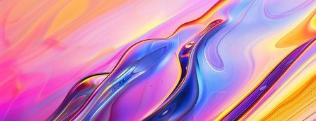 A vibrant, abstract background featuring swirling liquid with intense rainbow and holographic colors, creating a mesmerizing fluid pattern.