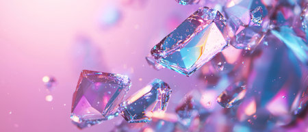 A captivating image of vibrant glass shards floating gracefully against a colorful background, enhanced by sparkling water droplets and soft focus elements.