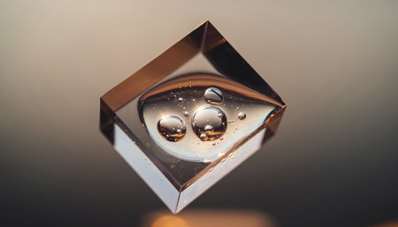 Closeup of a glass cube with a drop of water on it