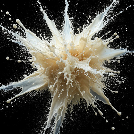 High Speed Photography of Explosive Milk Splash with Orange Light Background AI Generative