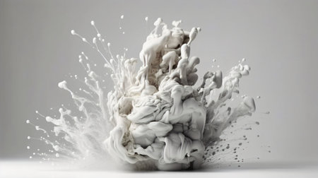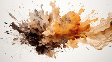 A striking ink explosion captured in mid-air, spreading intricate details and textures against a clean white background. Perfect for creative designs, artistic projects, and abstract concepts