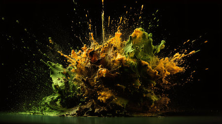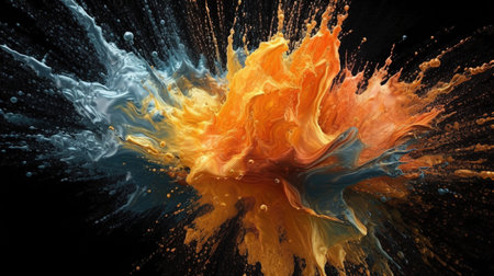 Vibrant paint splash explosion on dark background. Abstract art and dynamic motion concept.