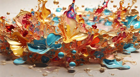 Vibrant abstract artwork showcasing dynamic paint splashes against a subtle neutral backdrop