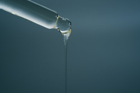 A drop of cosmetic oil falls from the pipette