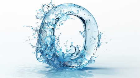 Graphic numbers: Water splash with number 0 isolated on white background. 3d rendering
