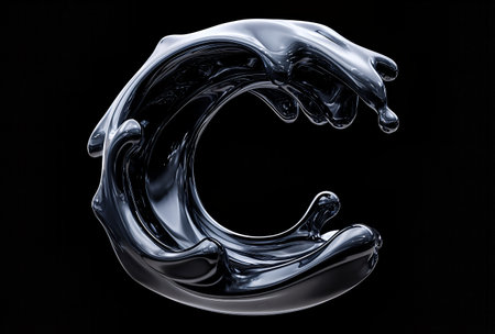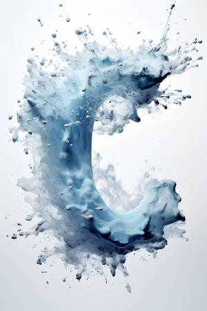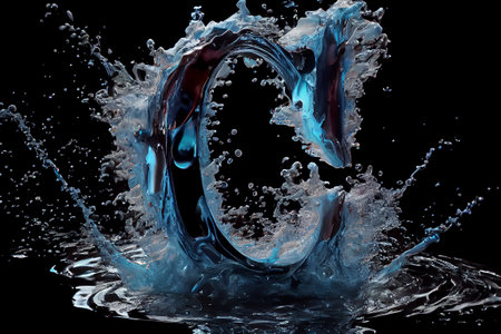 An AI-generated illustration of a blue C letter with water splash on the dark background