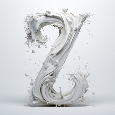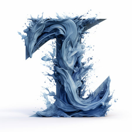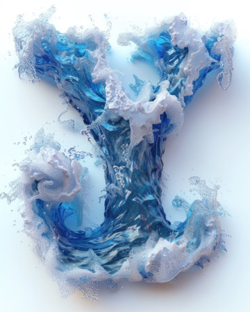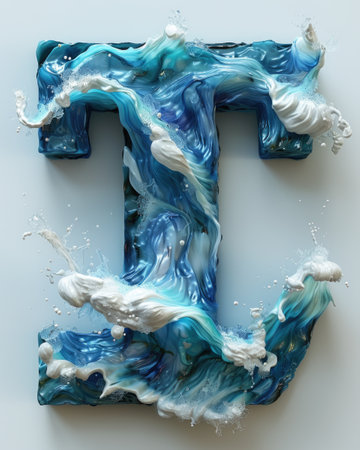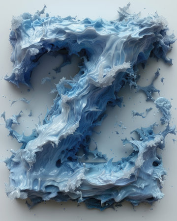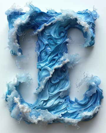 letter l created through water splashing in zbrush style. thick paint layers, theatrical installations, and innovative page design enhance the intensity of movement expression. john wilhelm's influence is evident in the light indigo and dark gray hues used. relevant keywords: letter l, water splashing, zbrush, thick paint, theatrical installations, innovative page design, john wilhelm, light indigo, dark gray, intense movement expression. ai generated
