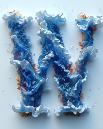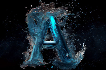 An AI-generated illustration of a blue A letter with water splash on the dark background