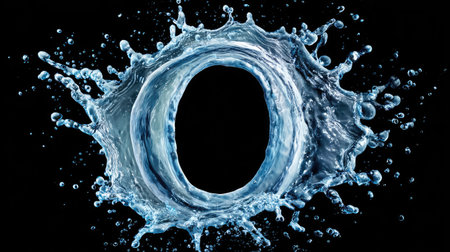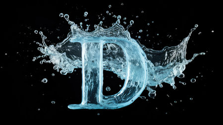 A stunning visual captures the letter D crafted from splashing water, creating an exhilarating scene against a dark backdrop. The image radiates energy and fluidity, showcasing the beauty of movement and the captivating nature of water.