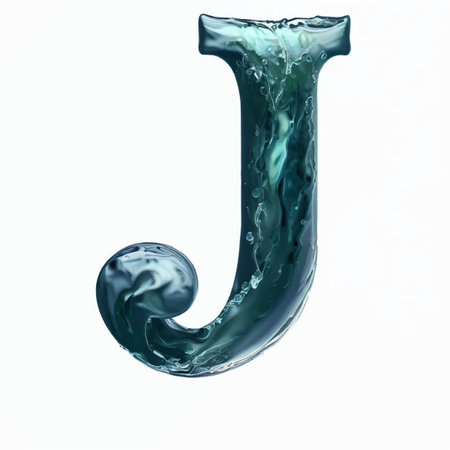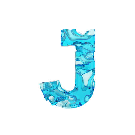 Alphabet letter J uppercase. Liquid font made of fresh blue water. 3D render isolated on white background. Typographic symbol from summer sea waves.