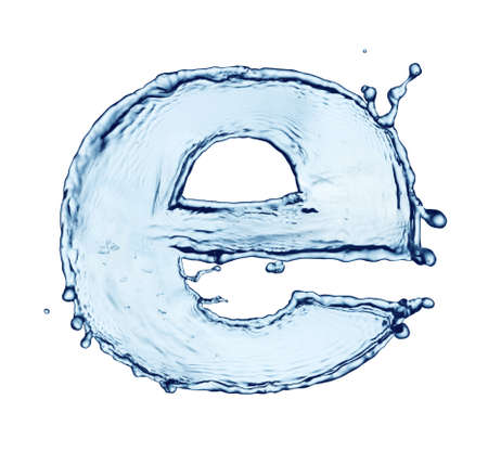 Water splashes letter isolated on white background. Abstract liquid font.