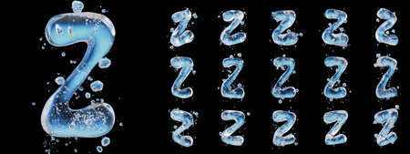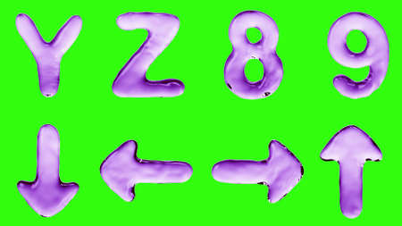 Alphabet from water isolated on a green background. The letter Y Z 8 9 arrow icon. 3d rendering