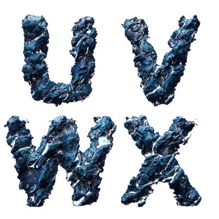 Alphabet from water isolated on a black background. The letter Q R S T U V W X. 3d rendering 4K