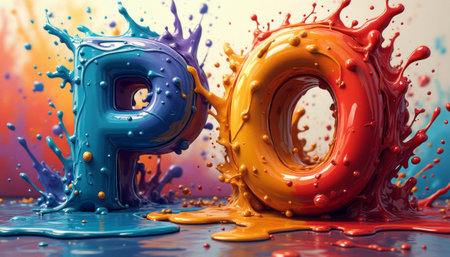 An artistic rendering displays the letter O formed from a vibrant splash of color. The visual features blended hues of red, orange, yellow, green, blue, and purple. The composition, likely created digitally, suggests a fluid texture, and could be utilized for various design and advertising projects.