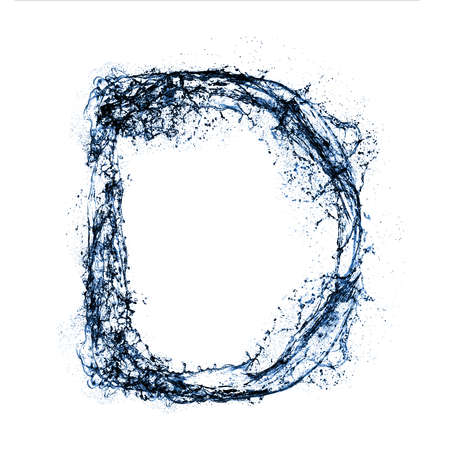 Letter D water splash alphabet isolated on white. 3D rendering illustration. Stylish modern alphabet.