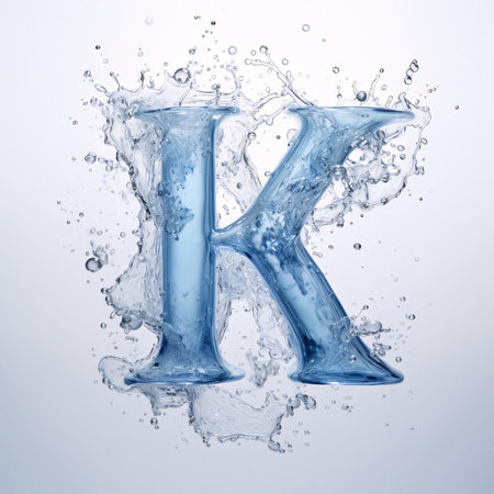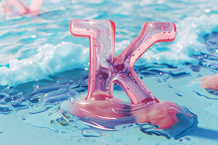 Graphic alphabet letters: Water splashes on white background. Letter K. 3d rendering