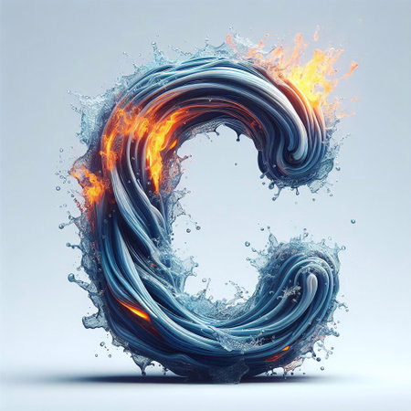 Water blends with fire letter C. AI generated illustration