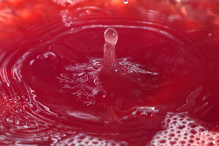 Red color drop falling in green color water