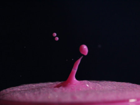 Exquisite bizarre beverage droplets created by pouring liquids into a drinking bowl