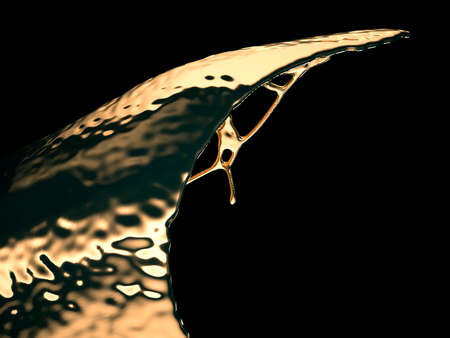 Liquid gold or oil splashes isolated on black. 3d render, 3d illustration