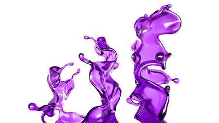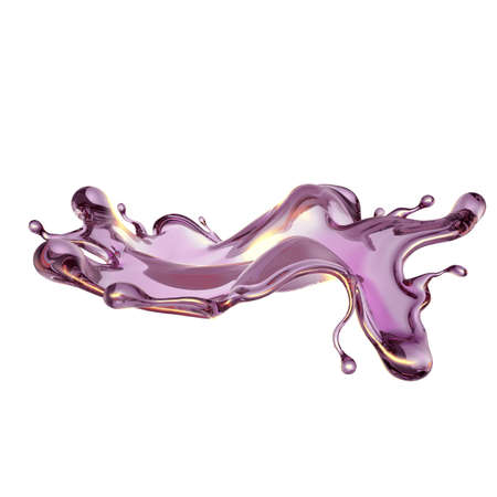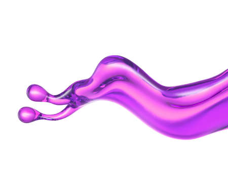 A splash of transparent liquid of a purple color on a white background. 3d rendering, 3d illustration.