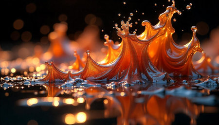 Abstract splash of liquid forming wave patterns with bokeh