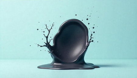 Black background with splash of liquid. 3d rendering, 3d illustration.