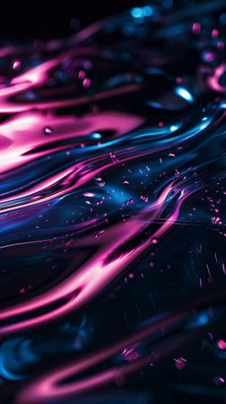 Abstract 3D fluid design with neon colors and liquid-like textures, creating a mesmerizing, futuristic visual perfect for tech and entertainment themes.
