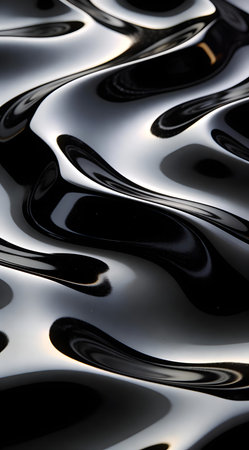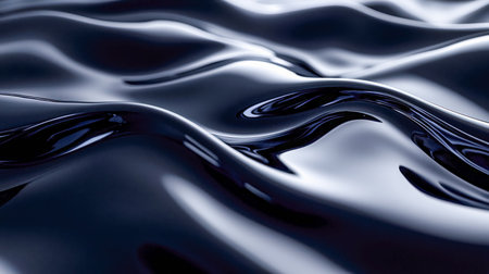 A glossy black substance forms gentle, fluid waves, creating a sleek, luxurious texture ideal for design, advertising, or artistic backgrounds.