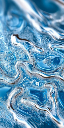 Abstract swirling blue liquid with smooth, flowing lines and subtle light and dark gradients.