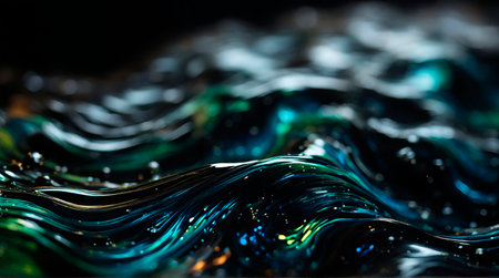 A creative digital illustration depicting Commercial professional illustration of obsidian volcanic glass texture, glossy black ripples, high-contrast edge lighting, dramatic sleek luxury. This AI-generated artwork features unique visual elements suitable for various commercial and editorial applications. AI-generated illustration.