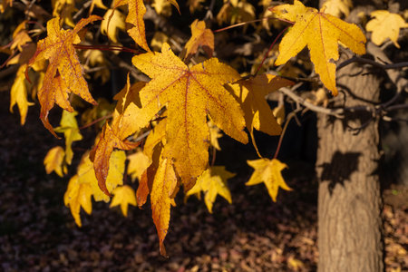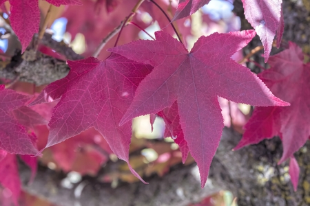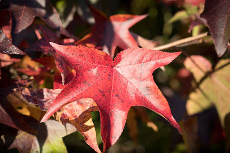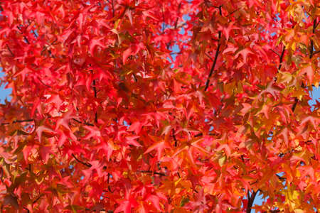 Amrican Red Gum tree (Liquidambar styraciflua) leaves in autumn