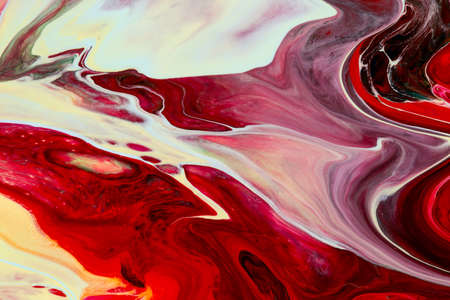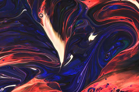 Close Up Colorful Red Blue White Fluid Pouring Abstract Art Acrylic Painting Texture Background
