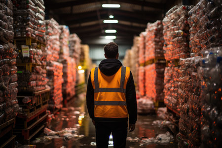 Engineer Standing and looking back The plastic bottle in the recycling industry