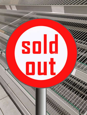 Empty shelves in store in The Netherlands, Europe, Supermarket with empty shelves for bread. With stop sign indicating warning of Sold Out - Corona infectious disease, COVID-19 concept