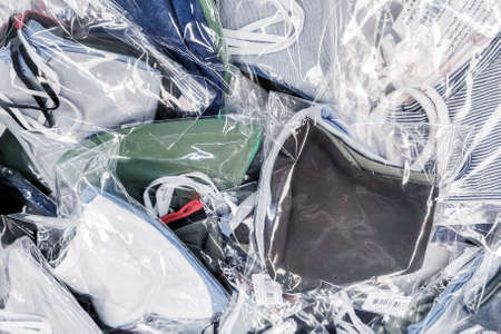 Pile of sorted plastic waste, prepared for recycling. Waste disposal, collection, separation, management, treatment, reuse, recycle and recovery concept.