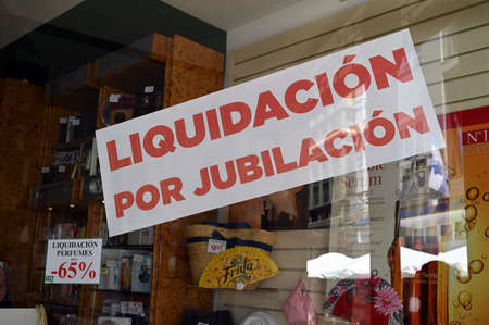 Liquidation due to retirement written in Spanish on a store window