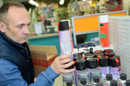 Painter in protective wear paints metal products with powder paint. Powder coating process at the manufacturing. High quality photo