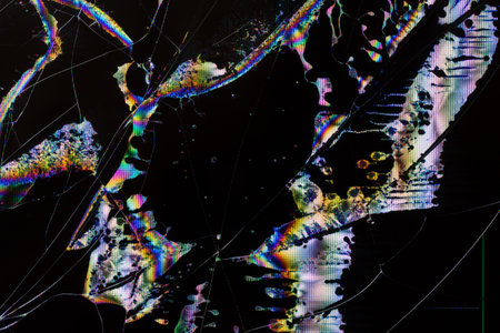 cracks on the broken screen of a liquid crystal display, computer monitor or television