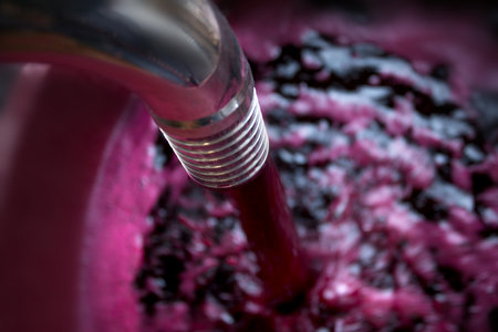 Bubbles on a red wine in the process of natural fermentation of the wort. alcoholic background