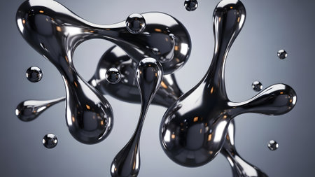 Abstract liquid metal, flowing shapes, studio backdrop, dynamic textures