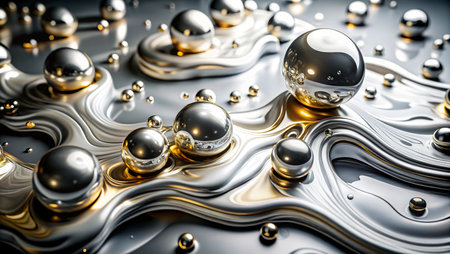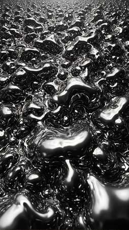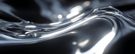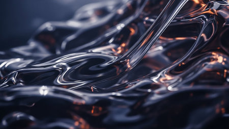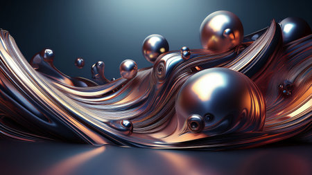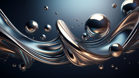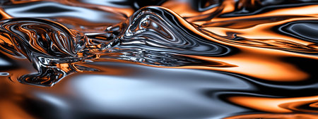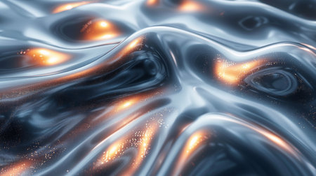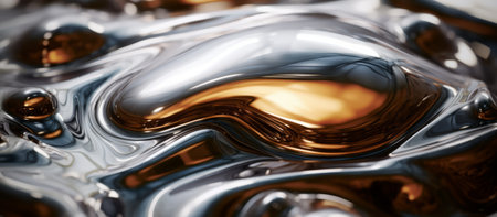 Abstract liquid metal, shiny and fluid, modern texture, copy space