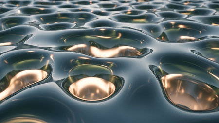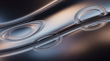 Abstract chrome circles on reflective metallic surface futuristic design background minimal modern wallpaper dynamic shapes.