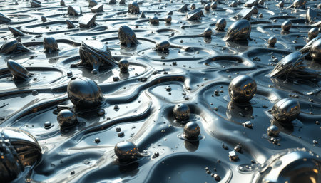 Close-up of a liquid metal, showcasing its ability to change shapes and conduct electricity for reconfigurable electronics.