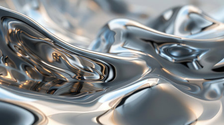 Sleek Liquid Chrome Surface with Smooth Wave Reflections A futuristic and high-gloss background featuring a seamless metallic liquid chrome texture