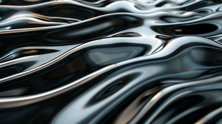 Shiny metallic surface with smooth waves reflecting light in an abstract design