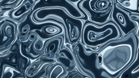 Abstract Chrome Swirl Background with Metallic Texture, Fluid Surface Art in Silver and Blue Colors