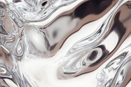 Abstract liquid chrome texture, glossy silver flows with subtle light reflections, modern and sleek