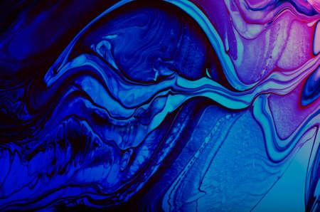 Abstract fluid art with pink and blue swirls, vibrant colors. Contemporary artwork concept