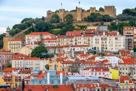 Lisbon Portugal july 25, 2020 Panoramic view of historical buildings in the downtown area of Lisbon, the hilly coastal capital city of Portugal and one of the oldest cities in Europe